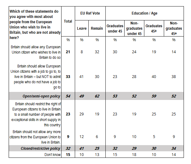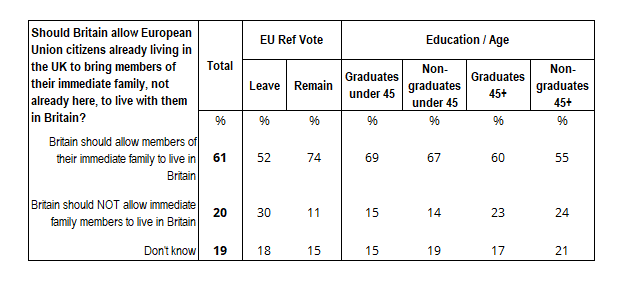 The figures above showed that, properly interpreted and enforced, “freedom of movement” could be a popular policy that appeals to both Jenny and Joe. This is even more true about a related immigration policy: admitting the members of the immediate families of EU citizens already living in the UK: