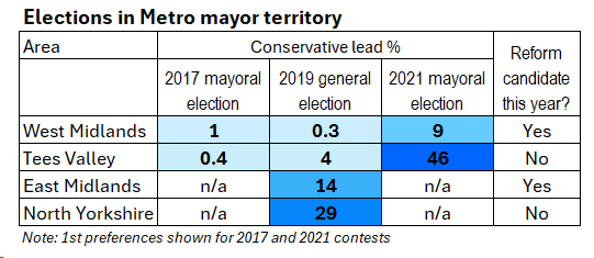 Does that appeal still hold? Houchen’s reputation may have been damaged by controversies over plans to redevelop the site of the former steelworks in Redcar. Allegations were made of wrong-doing, including by Houchen. An official inquiry found no evidence of corruption or illegality; but it did conclude that “a number of decisions taken by the bodies involved … do not meet the standards expected when managing public funds”. In such situations, perceptions matter more than reality. If Houchen can persuade voters he acted properly throughout, he should be re-elected comfortably. If not, he could be in trouble. If he ends up winning narrowly, he will be grateful that Reform is not fielding a candidate, so won’t be able to syphon off right-wing voters from him.