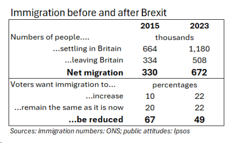 In 2010 David Camerom promised to reduce immigration to “tens of thousands” a year. He failed. Net immigration in 2015 was 330,000. Two thirds of the public thought this was too high. Public concern about immigration helped to propel Britain towards the Brexit referendum. We voted to “take back control” – of our borders most of all.